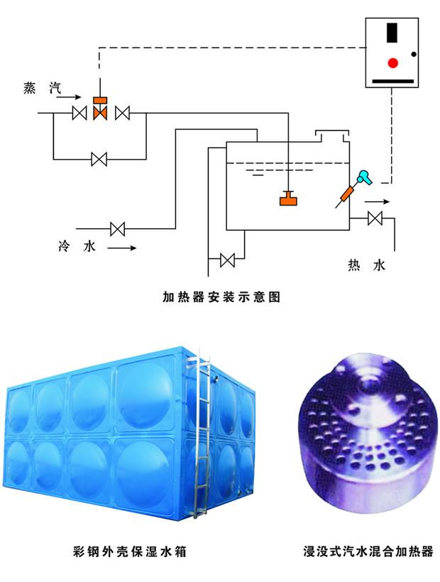2、浸没式汽水混合加热器,蒸汽与水直接混合,瞬间换热。